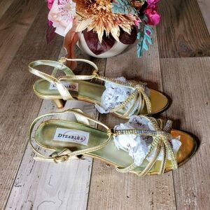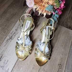 DYEABLES Women's 2in Heeled Sandals High Heels Size 8.5 NWOT Lindsey Gold PU