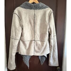 DYLAN | Faux Sherpa Cascade Collar Light Open Front Coat | Size Medium