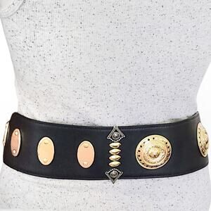 DYLAN LEX Romy black leather wide statement high waist medallion charm belt Sz S