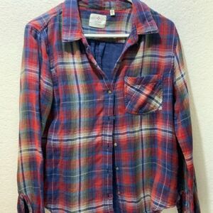 DYLAN Long Sleeve Red Black White Plaid Flannel Shirt Ultra Soft Women's Size M