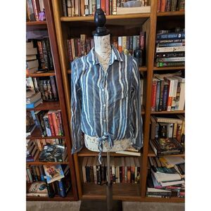 DYLAN tie front button down grey and white cotton top nwot sz small