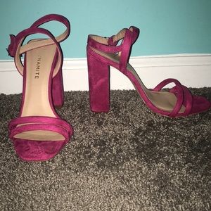 DYNAMITE sandals with thick heel. Wrap around ankle strap with buckle. Fushia color. Size 9. Worn once.