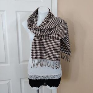 D&Y Softer Than Cashmere houndstooth fringed scarf