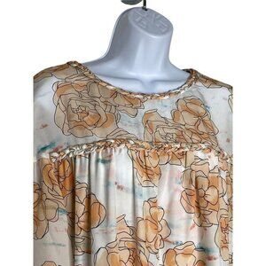 DYVNA Woman’s Floral Silk Dress Peach Orange White Pastel Watercolor Shift SZ 4.