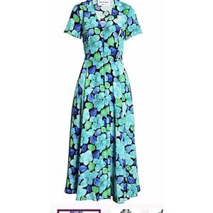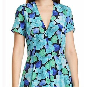 DYVNA Blue Tonal Leaves Button Front Midi Dress NWT Size Large