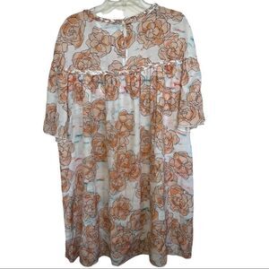 New With Tags! DYVNA Orange/White Floral Silk Bell Sleeve Braided Trim Shift Dress In A Size 10 !