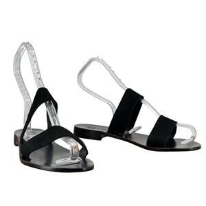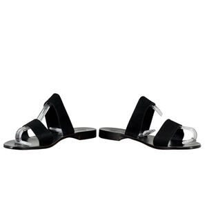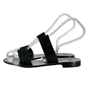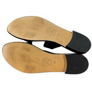 Da Costanzo Capri Double Strap Leather Sandal Slide Flats 40 Women's Black Italy