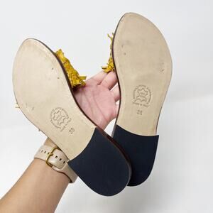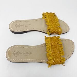Da Costanzo Capri Womens Size 38 Yellow Fringe Flat Sandals Leather Open Toe