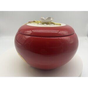 * Da Hong Pao Tea Porcelain (Empty) Red Jar with White Lotus Design and Lid