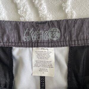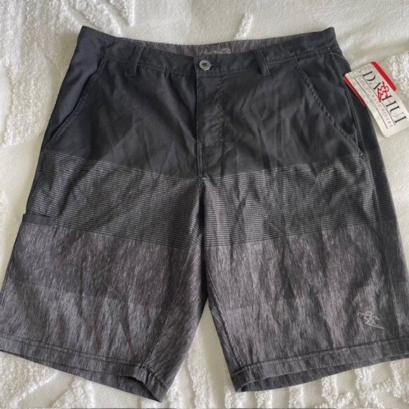 Da Hui Board Shorts Men 34 Black Gray Swim Trunks Hybrid 10 Inch Water Resistant