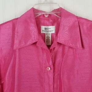 Da Rue Drapers & Damon Womens Button Blouse Size 14 Shiny Hot Pink Layer Vintage