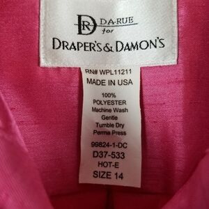 Da Rue Drapers & Damon Womens Button Blouse Size 14 Shiny Hot Pink Legally Blond