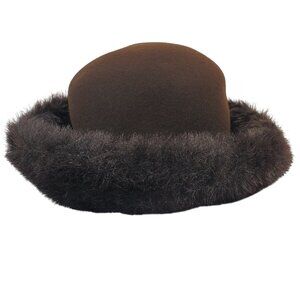 Da-Me Women's Brown Wool Hat w/ Faux Fur Trim. Made in Italy. 23"