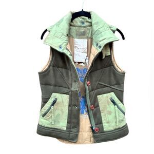 Da-Nang Army Green and Tan Quilted Vest with High Collar Size S