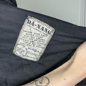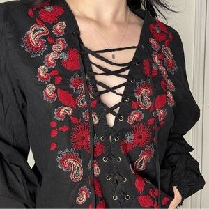 Da-Nang Black and Floral Lace-Up Blouse Medium