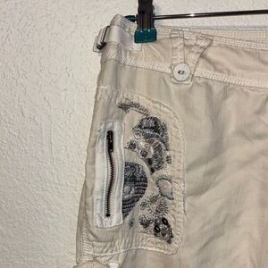 Cream embroidered cargo bermuda shorts from Da Nang. Size small.