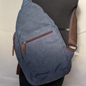 DaVan Sling Shoulder Bag Leather Trim W/ Water Repellent Canvas
