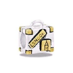 DaVinci Charm Bracelet 7" 9 Beads - Travel London England Passport Garnet Red CZ