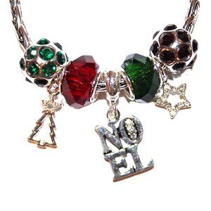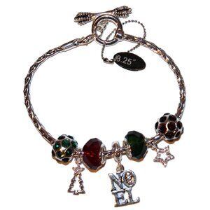DaVinci Charm Bracelet 8.25" w/ 7 Beads - Christmas Tree NOEL Holiday Red Green