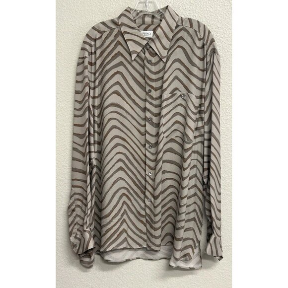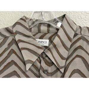 DaVinci Shirt Long Sleeve Rockabilly Gray Brown Print Men’s Vintage