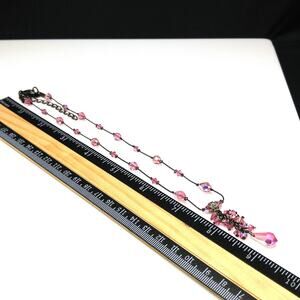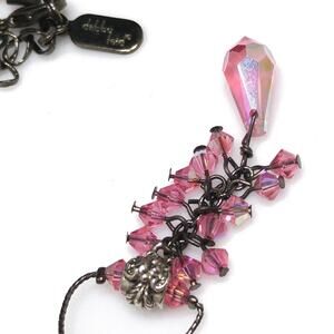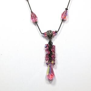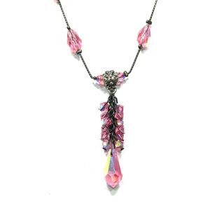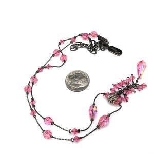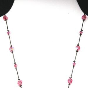 Dabby Reid Pink Swarovski Crystal Necklace, AB Beads, Dark Chain Vintage Jewelry