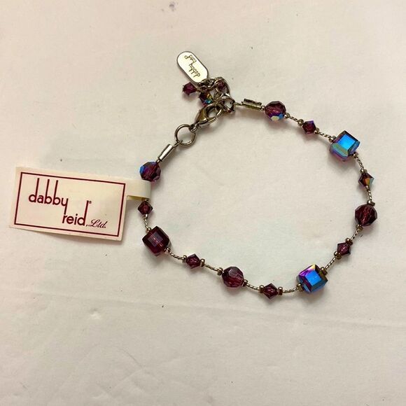 Dabby reid mauve iridescent geometric shapes crystal bracelet silver color chain