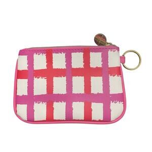Dabney Lee Coin Purse Pouch Key Ring Heart with Pink White Red Pattern