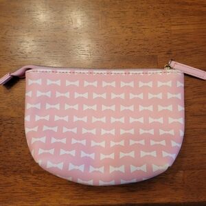 Keywords: Dabney Lee Cosmetic Bag, Pink Makeup Pouch, Bow Print Bag, Travel Size Toiletry Bag, Gift for Her, Small Zipper Pouch
