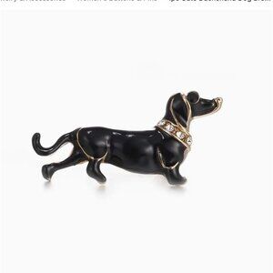 Dachshund Black Enamel Lapel Pin with Gold Tone Crystal Collar