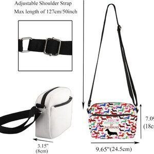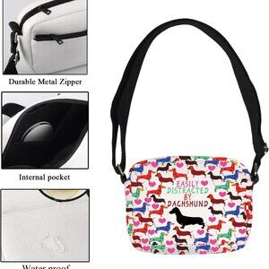 Features: Made of high-quality waterproof canvas, this cute dachshund-themed bag combines style and function. It has three pockets — two large zipper compartments and an inset pocket — perfect for keeping your essentials organized like your phone, wallet, keys, and lipstick. The adjustable strap lets you wear it as a crossbody, shoulder bag, or handle bag for versatile carrying.