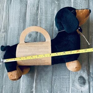 NWT Little Toasties New Zealand Heat & hug black and brown two-tone plush heated dachshund dog with weighted interior. Microwaveable. Heat and hug. Packaging / cardboard may vary but item is identical. Cardboard packaging may be torn from storage.