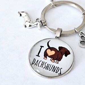 Dachshund Dog Keychain I Love Dachshunds Funny Gift w/ Charms Cute Pet Accessory