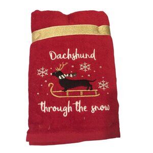 Dachshund Through the Snow Holiday Hand Towels Set of 2 Red Embroidered Dog on S