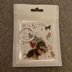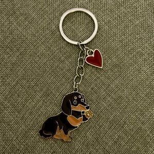 New. Dachshund keychain. Cute dog pendant and heart charm. Metal. Bundle to get 25% off.
