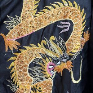 Dachunghwa Unisex Black Embroidered Dragon Satin Robe Kimono Vtg 90s Y2K NO BELT