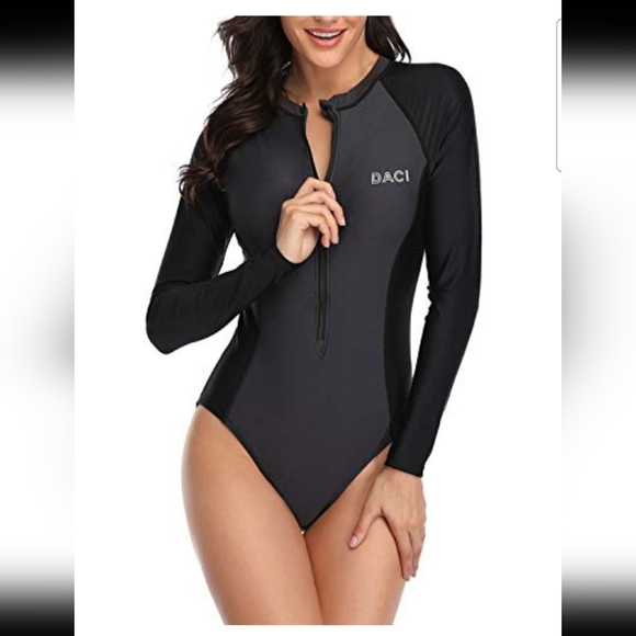 Daci Black Longsleeve Rash Guard Zip-Up Swimsuit Size XS. Great condition