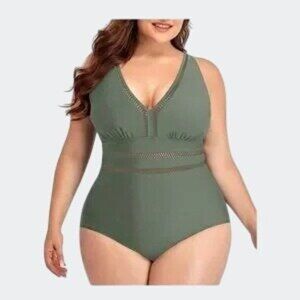 Daci Olive Green One-Piece Swimsuit With Adjustable Straps & Waist Detail 20W