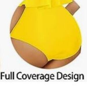Plus Size High Waisted Tummy Control Ruffle Swimsuits: The plus size bikini top goes well with the ruched full coverage high waisted bottom. The shirred front provides tummy control, shaping and slimming. Modest coverage makes you look very charming and slim.