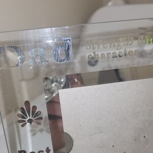 Elegant glass photo frame featuring silver accents and heartfelt engravings. Perfect for showcasing cherished memories. Good for a picture of Dad or you and dad or baby and dad! 4x6