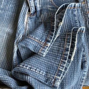 Dada Women's Stone Washed Textured Mid Rise Boot Cut Denim Blue Jeans Size 12