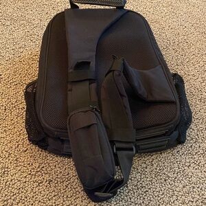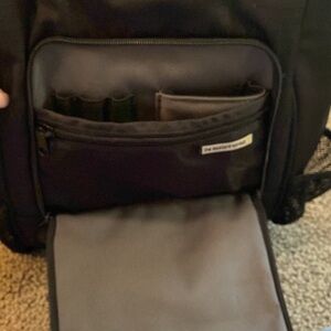 This amazing daddy diaper bag/work bag is perfect for those who need to carry their essentials and baby's necessities on-the-go. The bag is in excellent condition and can be used as a diaper bag or a work bag. It features lots of pockets, bottle holders, and even a keychain clip for added convenience. The handle allows for easy carrying, while the adjustable sling back shoulder strap ensures a comfortable fit for any height. Whether you're going to the office or taking your little one to the park, this bag is both stylish and functional. Don't miss out on this must-have accessory for dads!