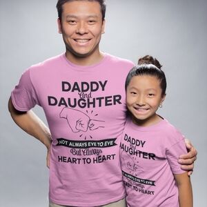 Daddy and Daughter Kids Tee...not always eye to eye but always heart to heart. For dads and daughters everywhere. Available in most sizes, white, crew neck tee. Ask about the availability of other colors, if interested. Long sleeves, hoodies and sweatshirts are an additional fee. Please specify the size you need. Adult tee sold separately.