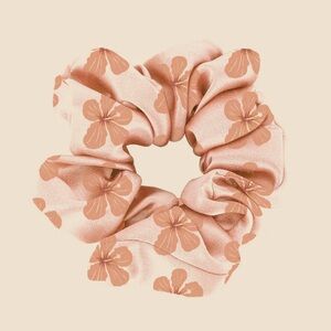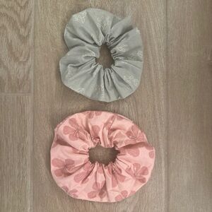Brand new, never used hair scrunchies from Dae Hair! Linen. Floral designs. One in pink and one in green.