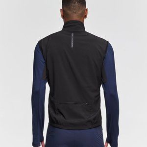 Vest Run is the perfect running vest for cold temperatures. It feels almost weightless, even with insulating padding at the front. The padding consists of a mixture of merino wool and recycled polyester to provide great heat protection in areas exposed to the cold. The vest has several reflective panels at front and back, providing maximum visibility in the dark. They are not visible in daylight, but are highly visible when you need them. The vest's back pocket has two functions. You either use it to keep your belongings in during your run, or you can turn the vest into the pocket to save space. The front zipper zips right up to the neck with comfortable chin protection. Laser-cut holes at the top of the back provide good ventilation.