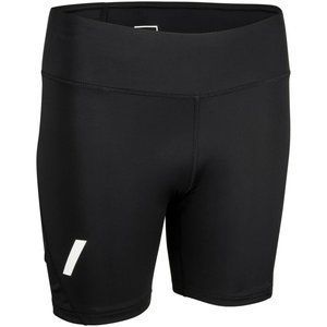 Short, women-specific running tights that wick moisture away from the body and provide good breathability for dryness during high energy activities.