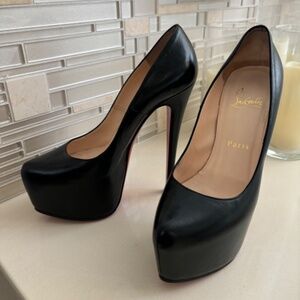 Elevate your shoe game with these stunning Christian Louboutin Daffodil pumps. Crafted from high-quality leather, these black pumps are perfect for any fashion-forward female. With a US shoe size of 6 and an EU shoe size of 36. These pumps are designed to fit comfortably.The elegant design of these pumps features a daffodile style and a sleek black color that is perfect for any occasion. The upper material is made from luxurious leather, and comes with dust bag.