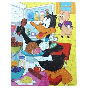 Daffy Duck Refrigerator Raid Large 100 Pc Puzzle 14x18 Whitman 1974 Looney Tunes