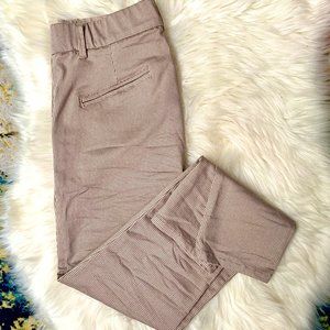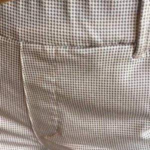 Great Bevy Flog pants in cream & brown checkered pattern. Dafna style, flat front