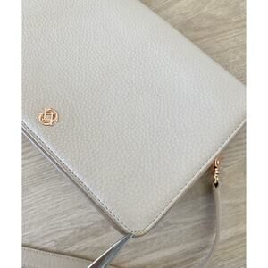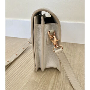 Dagne Dover Andra Pebbled Leather Neutral Crossbody Bone Shoulder Bag Medium