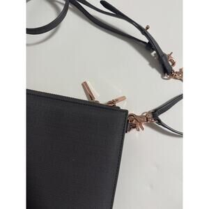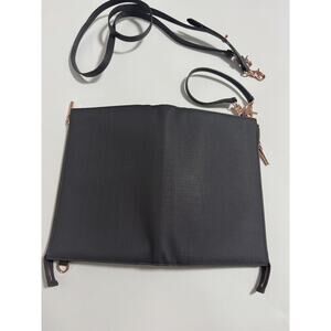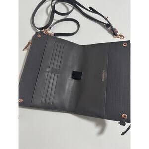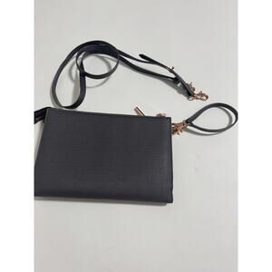Upgrade your style with this versatile Dagne Dover Essentials Clutch Wallet Bag in the sleek Graphite color with eye-catching Rose Gold hardware. This functional and stylish piece can be carried as a wristlet, clutch, wallet, or worn as a crossbody bag.